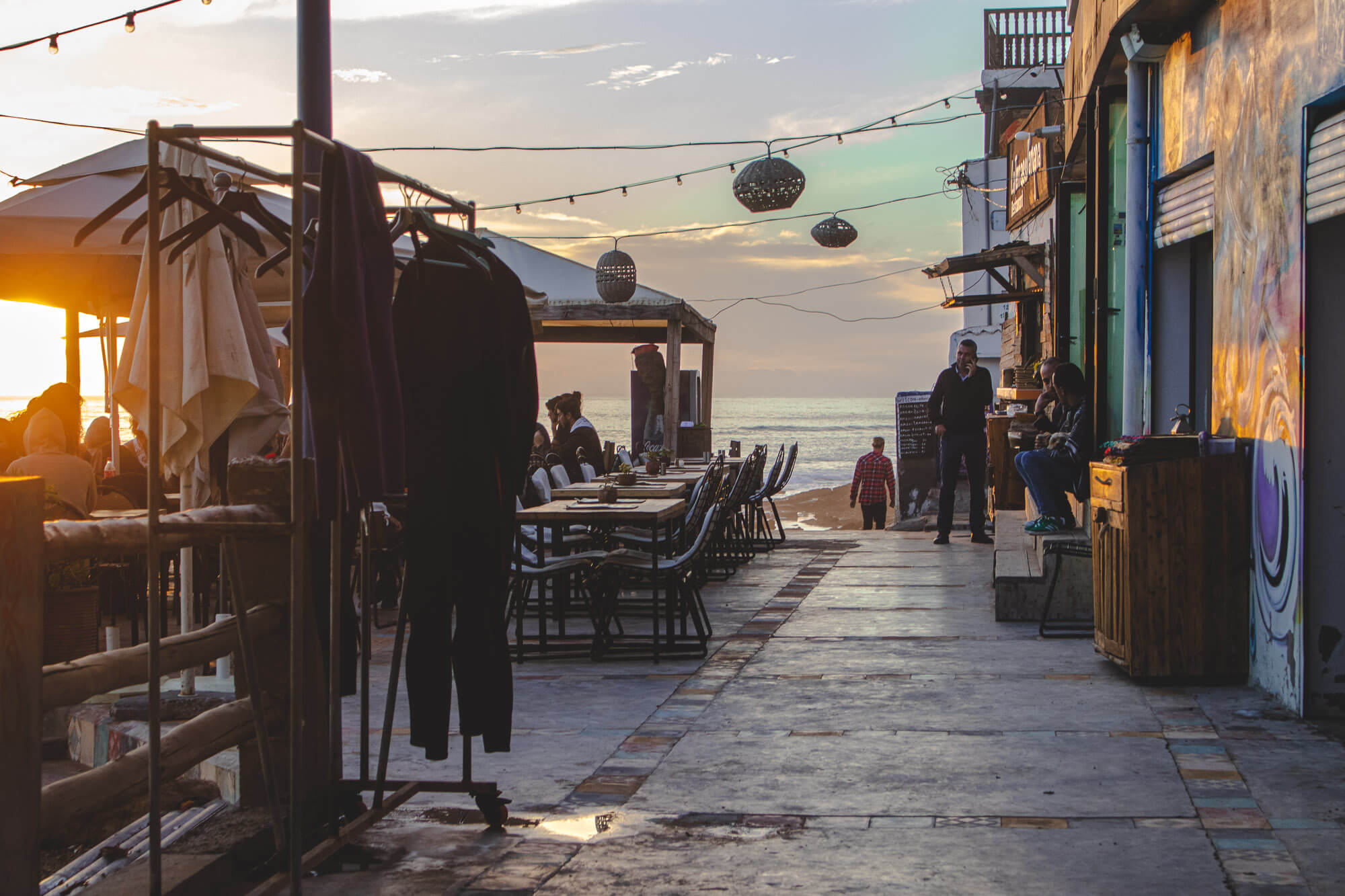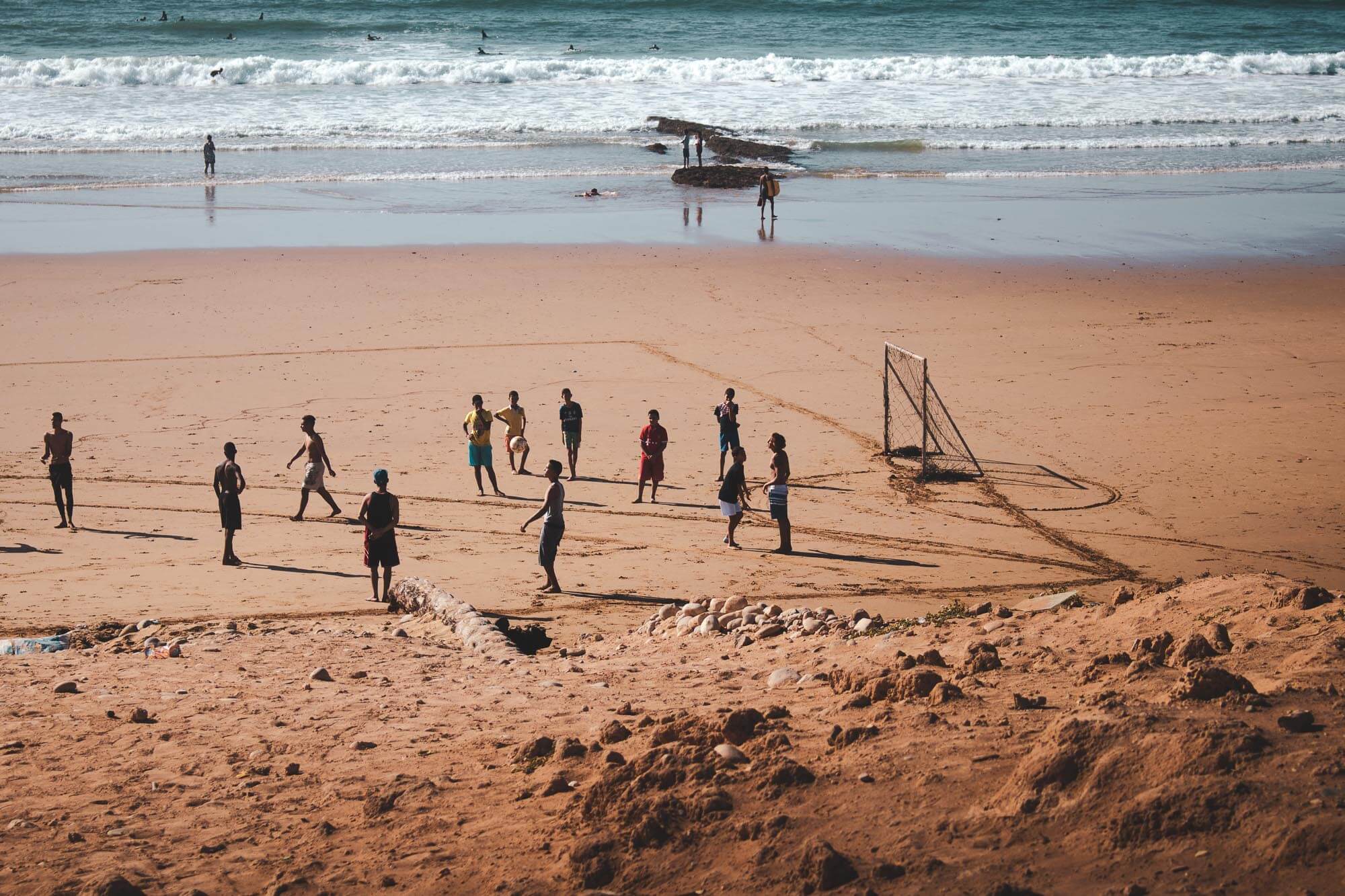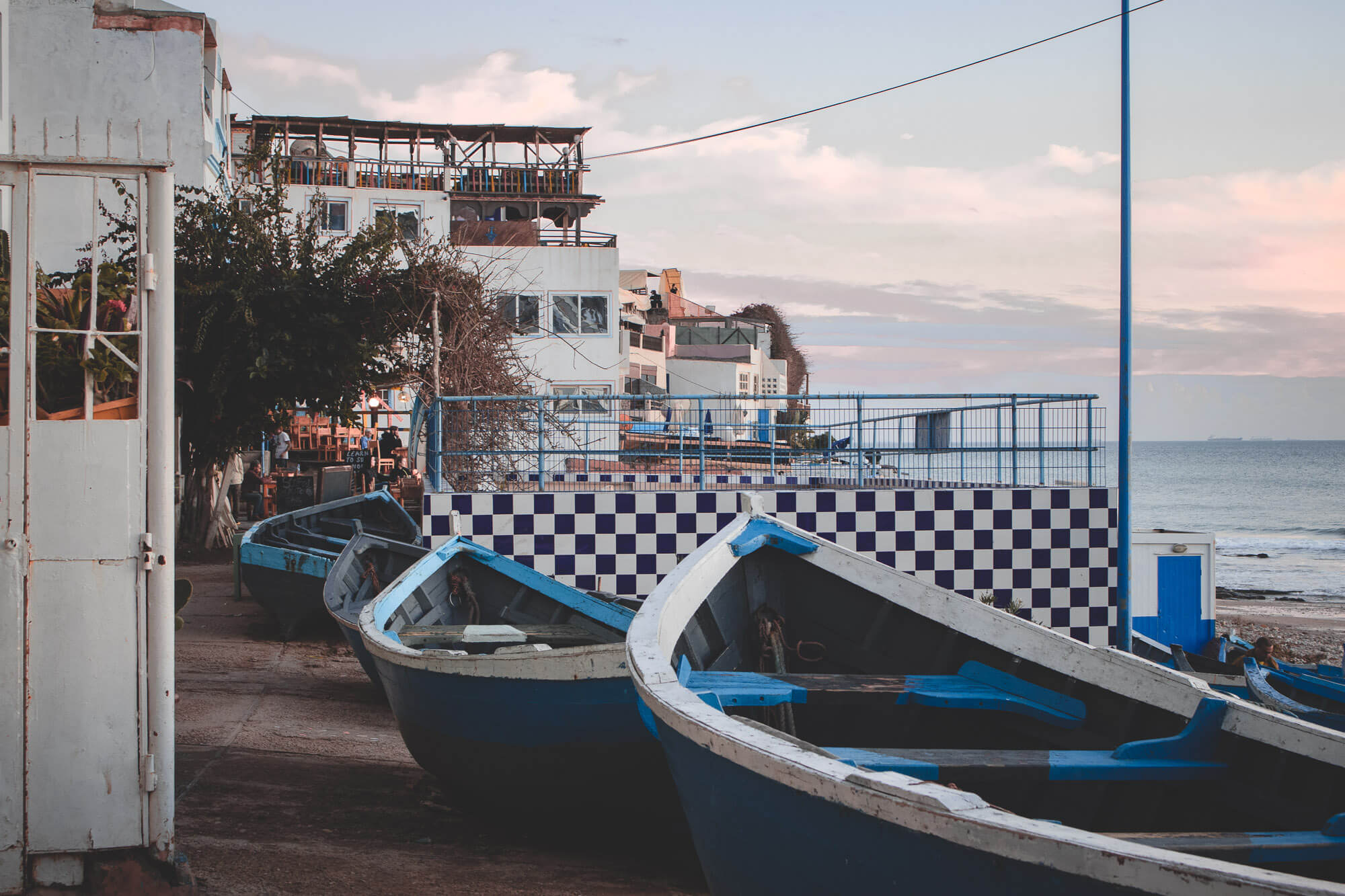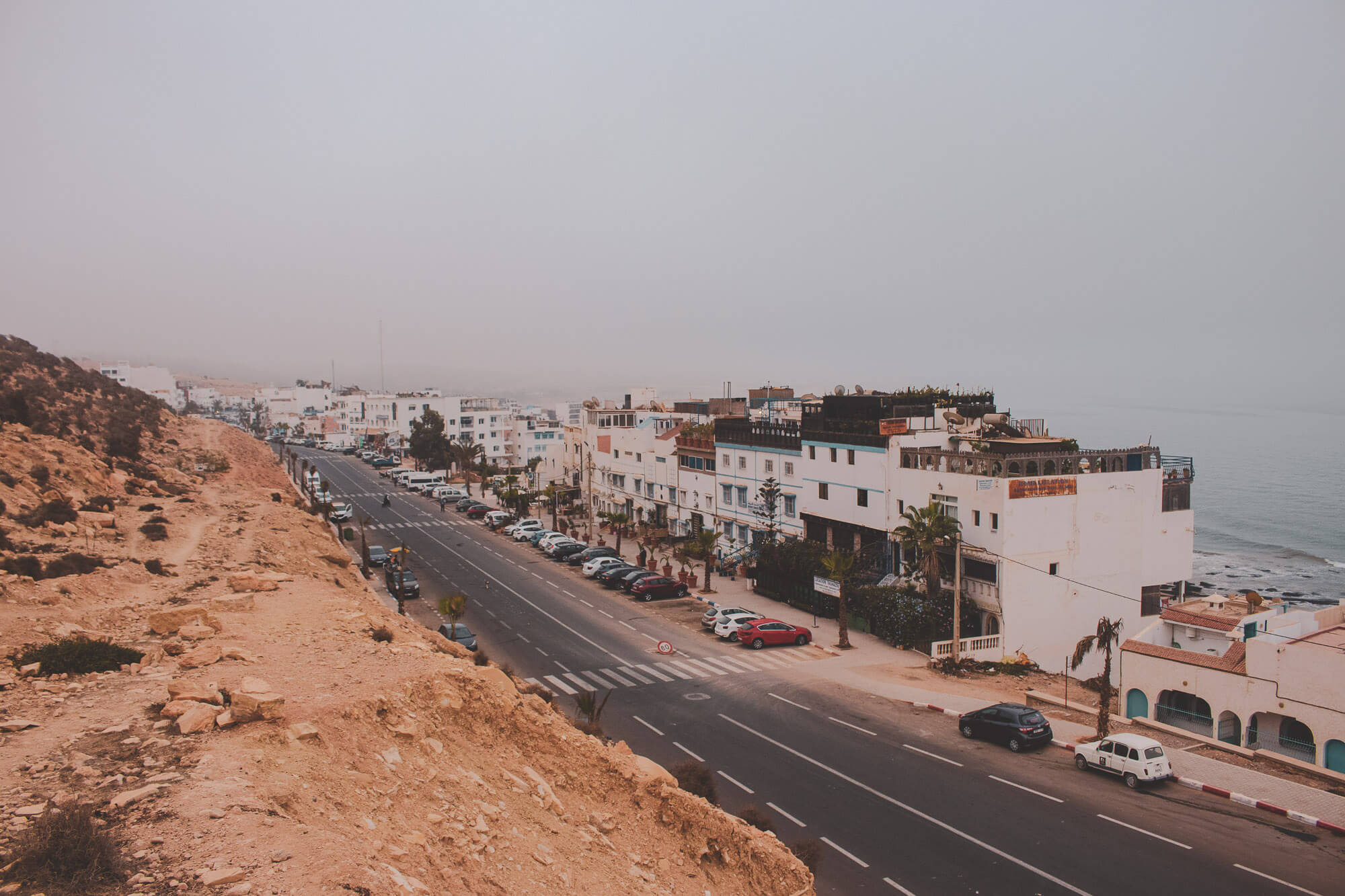 Taghazout is a small fishing village situated north from Agadir in a southwestern Morocco. The inhabitants there are mostly Berber origin, although you can meet there people from all over the country. The main source of income is still fishing, production of argan oil and tourism. In the late 1960s and 1970s it was a popular destination for hippies looking for a base while exploring Morocco. At some point, in Taghazout and neighboring areas several hundred young people would reside in tents, makeshift buildings, and camper vans.
